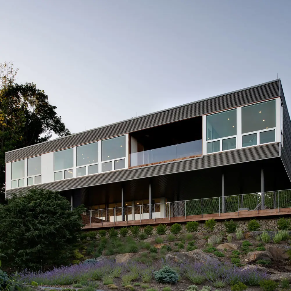 DRPILLA provided structural engineering services for this 6,320-square-foot residence nestled among the trees on one of Croton-on-the-Hudson’s elevated locations, commanding a view of the river below. The design, dictated by a compact and linear plan, showcases a lengthy 2,210-square-foot lap pool positioned beneath the house. Encircled by a cantilevered ipe deck, the pool creates a unique and harmonious connection with the surroundings.